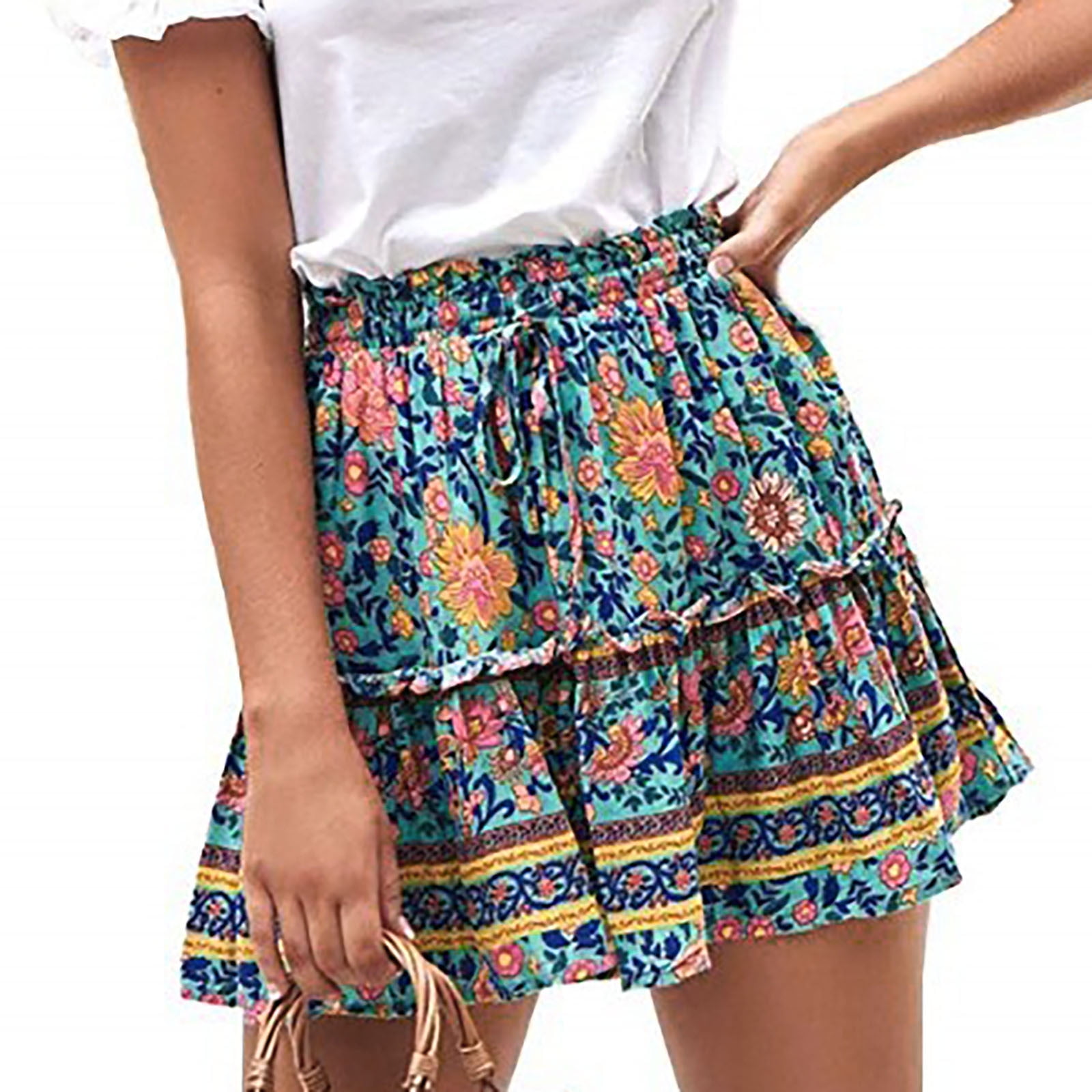Yotami Skirt For Women Fashion Women Printing Casual Bandage Ruched Ruffles Elastic Waist Skirts Green Walmart Com